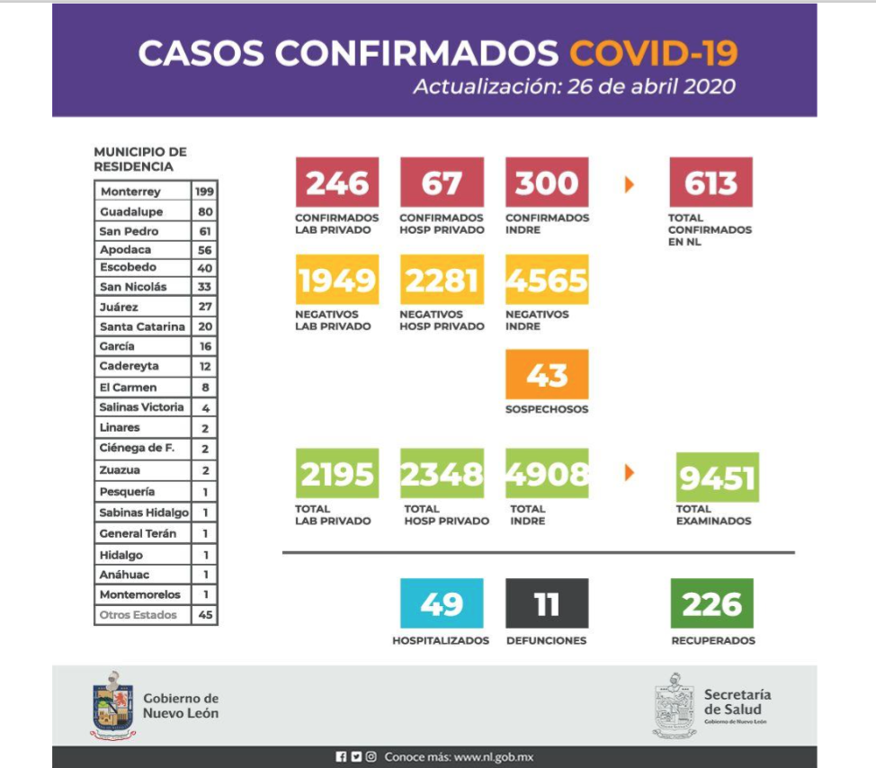 また、ヌエボレオン州では、車移動は乗員2名、マスク着用が要請されていますのでご注意ください。